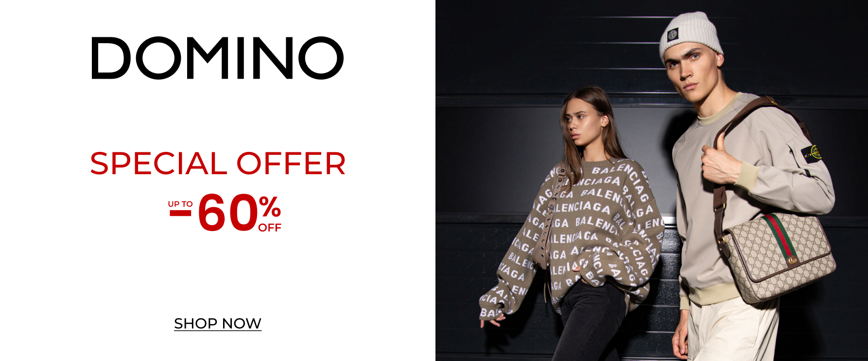 Понад сотню світових модних брендів ви знайдете на полицях просторів Доміно Київ, Доміно Одеса та на сайті магазину. Тут і позачасова класика: Dior, Chanel, Prada, Saint Laurent; і сміливі нові експерименти Miu Miu, Chrome Hearts; і альтернатива класичним виробам від Stone Island, Moorer, Balenciaga; і безліч інших гучних імен, кожне з яких має свою історію, свою особливість та особистість.